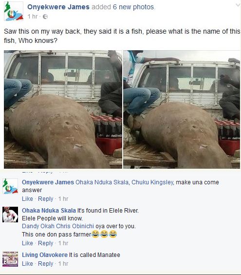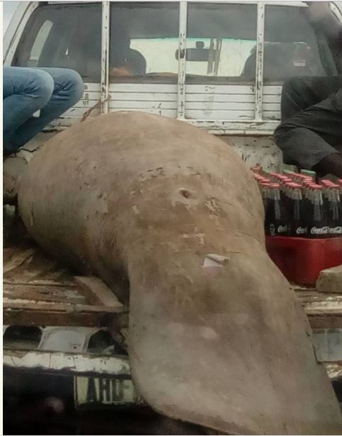 Responses from his social media page indicates the animal is a Manatee aka Sea Cow and is commonly found at the Eleme River in the Niger Delta State.