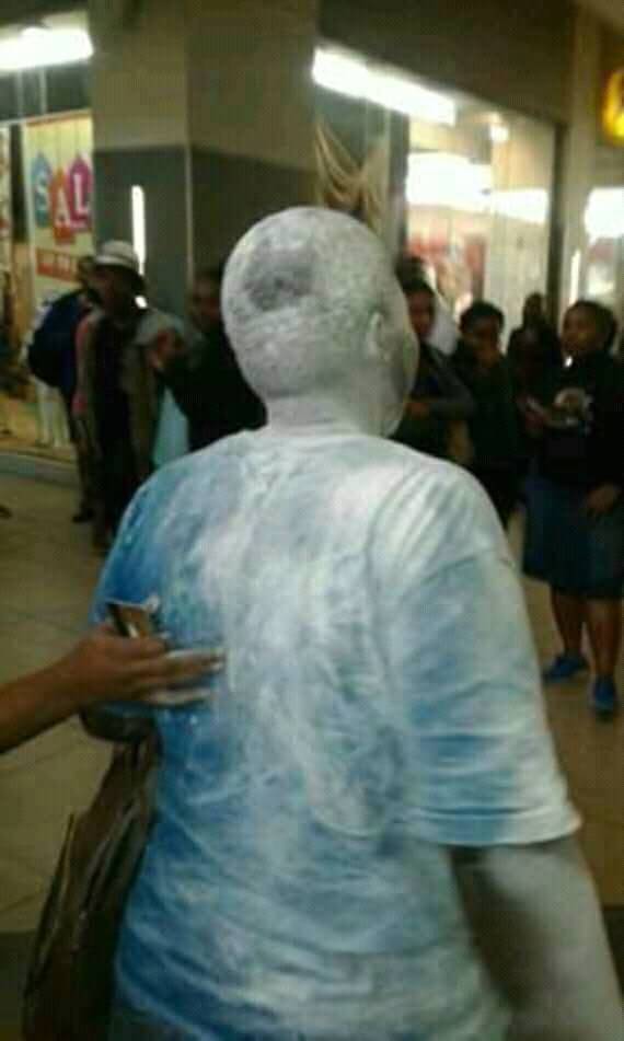 A 35-year-old Zambian woman has been given the disgrace of a lifetime after she was caught stealing at a shopping mall. The unnamed woman was caught yesterday and had her body painted with white powder by Pick N' pay staff to punish her.