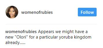 A photo of an unnamed Olori is currently trending on social media with claims that she is the direct replacement of the Edo native, Wuraola Otiti who has purportedly relocated to start her life all over again.