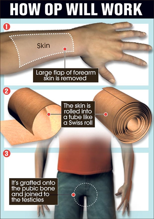 The skin and fat from his forearm was removed to create the new penis, which was then attached during an 11-hour operation.