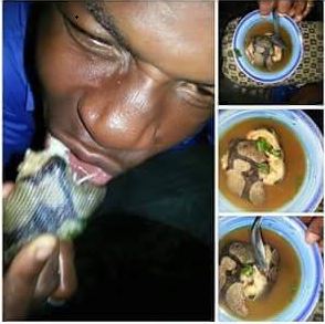 A Nigerian man has shocked people by sharing photos of him eating snake meat peppersoup. The man who attested to the sweetness of the meat couldn't hide his happiness as he urged people to try it out.