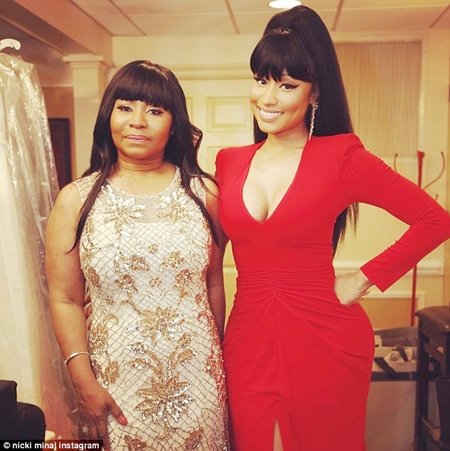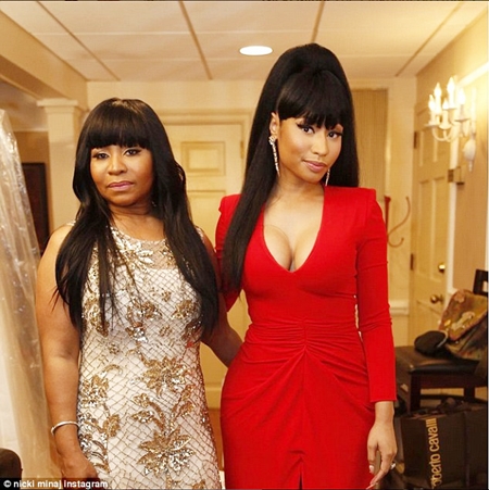 Nicki posed for snapshots with her mother Carol before her brothers wedding ceremony