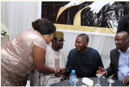 Dangote Stands Up to Greet Busty Actress, Foluke Daramola in Public (Photos)