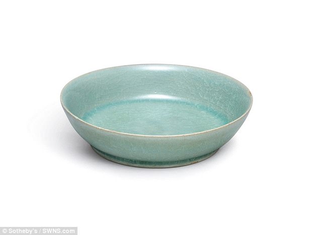 It was made by Ru guanyao, which is one of the most revered of the Five Great Kilns used during this period. The dish, which has a diameter of just 13cm and would have been used to clean brushes, has a glowing, intense blue-green glaze and 'ice crackle' pattern.