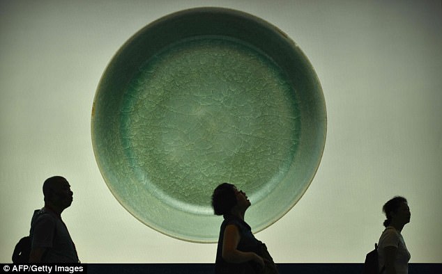 A statement from the auction house said: 'Today at Sotheby's in Hong Kong, a new world auction record for Chinese Ceramics was set when a highly important and extremely rare Ru guanyao brush washer sold for £28.2 million after a 20 minute bidding battle'.