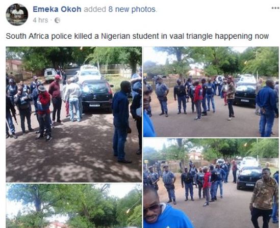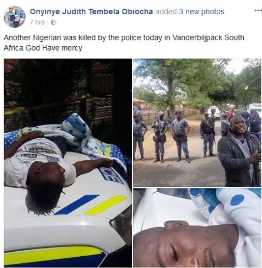 A Nigerian student identified as Ibrahim Badmus has been reportedly killed by police men in South Africa at Vanderbijlpark triangle.