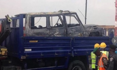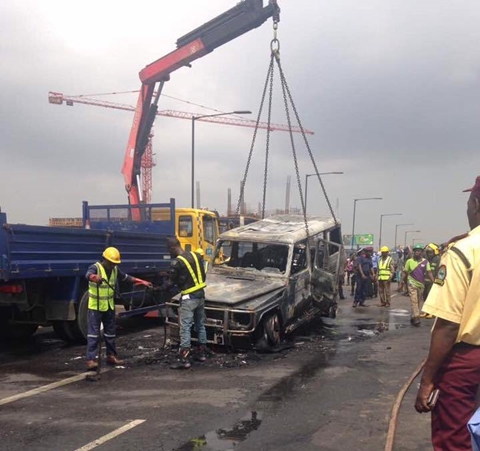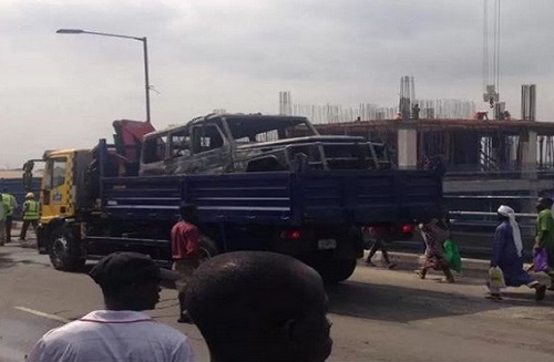 Mercedes G-Wagon Allegedly Belonging to Gov. Fayose Burns Down in Lagos (Photos)