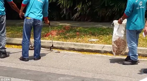 There was no winner in the battle, as it ended with a cobra escaping to the bushes as soon as the members of pest control appeared and a python being taken to a forested area.