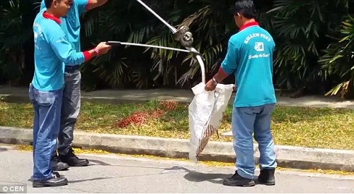 The video captured by one of the paserss-by shows the cobra trying to sink its fangs into the python’s wriggling body and inject a fatal dose of poison, while the python is using his own deadly tactics gradually constricting its enemy.