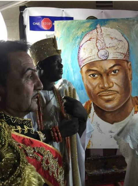 A white artist was pictured making a portrait of the a paramount traditional ruler from Osun State, Nigeria right in his presence.