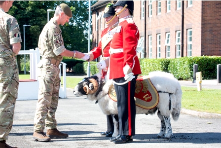 A Ram named Private Derby was promoted to the rank of Lance Corporal at an event in Chester marking 8 years of the Mercian Regiment in a colourful event.
