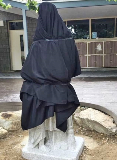 The school was forced to cover the statue with a black cloth after students took inappropriate photos on Friday, the Adelaide Advertiser reports.