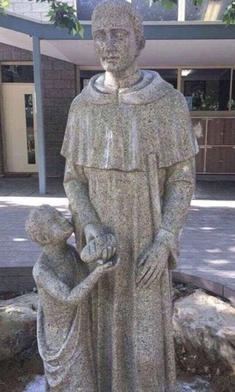 A Catholic boys school Blackfriars Priory School in Adelaide, Australian, has been forced to cover up a brand new sculpture of Martin de Porres, the 12th century Spanish-born saint, after a rather unfortunate design created a storm on social media.
