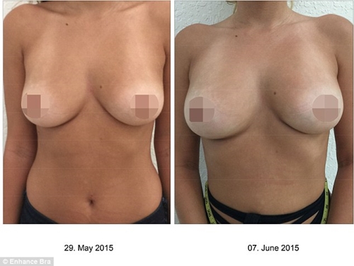 Plastic surgeon, Dr. Michael Salzheaur, who independently trialed the bra, meticulously measured and took photographs of tester Sabrina Molinar - and confirmed that her breasts increased in size after wearing it.