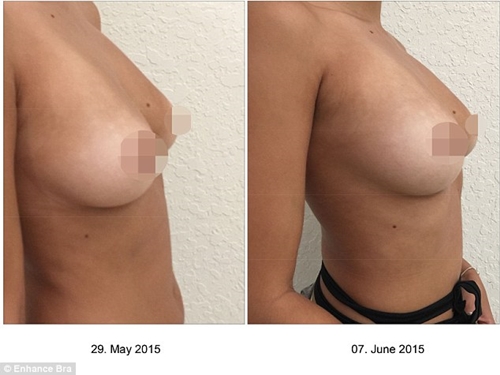 In one trial in Miami overseen by a specialist doctor - a 49-year-old woman saw her breasts increase from a B to a C cup after she wore the bra for just 15 minutes a day over seven days.