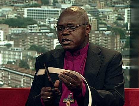 The Ugandan-born Archbishop returned to the BBC’s Andrew Marr Show to be handed back the remains of the item.