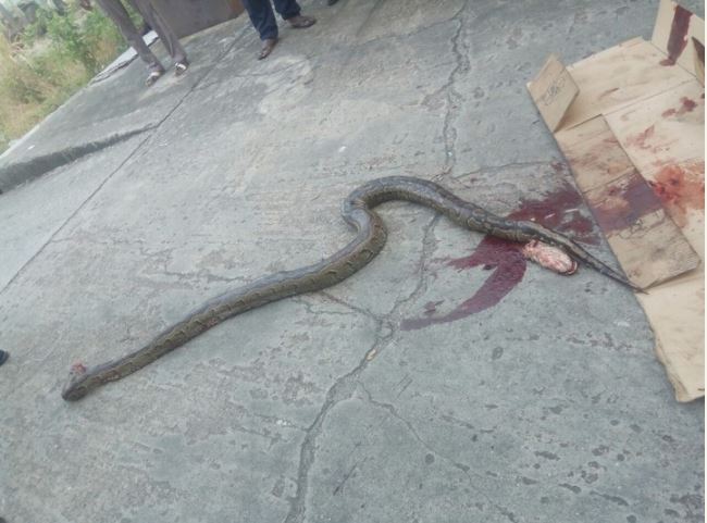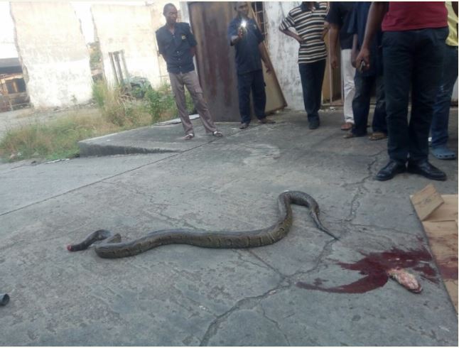 Dangerous Python Snake Killed at Apapa, Lagos (Photos)
