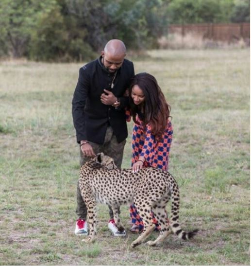 Newly weds, Mr and Mrs Wellington who are currently on their honeymoon shared photos as they pet two cheetahs at the Zebula Golf Estate in South Africa.
