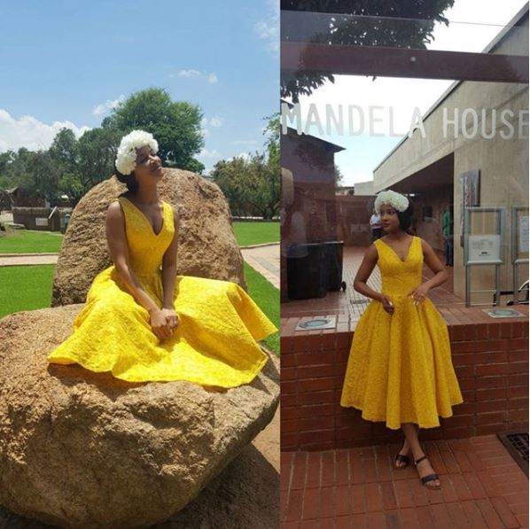 The 29-year old born in Owerri, Imo State shared this lovely photos of herself rocking a yellow gown as they stepped out for sight-seeing yesterday.
