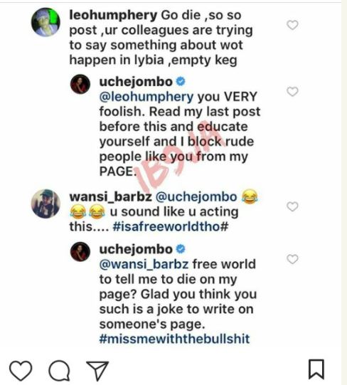 Nollywood actress, Uche Jombo came under attack for not having a say or criticism on the busted slave trade in Libya.