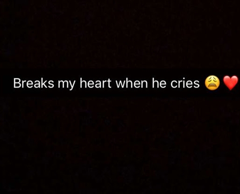 In a new post on Snapchat, the excited new father who has been playing active role in his new baby's life revealed to his fans that it breaks his heart each time he hears him cry.