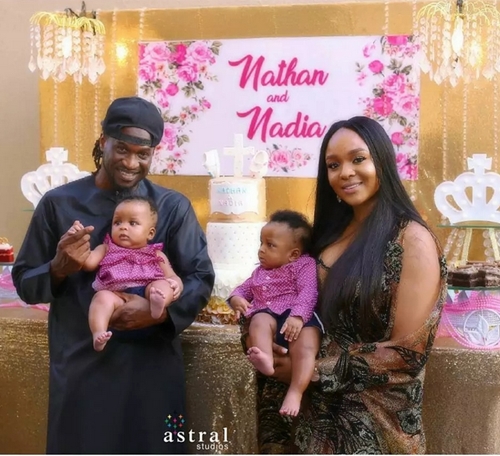 Paul Okoye, one half of defunct music duo, P-square and his wife, Anita, dedicated their twins, Nathan and Nadia in a Church in Lagos recently, and the ceremony saw their famous celebrity friends like ace comedian, Julius Agwu and others attend their special day.