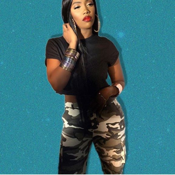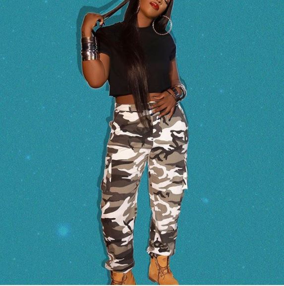 The U.S returnee who once worked as back-up singers for international musicians rocked a military camouflage pair of trousers and a black top with Timberland boots to match.