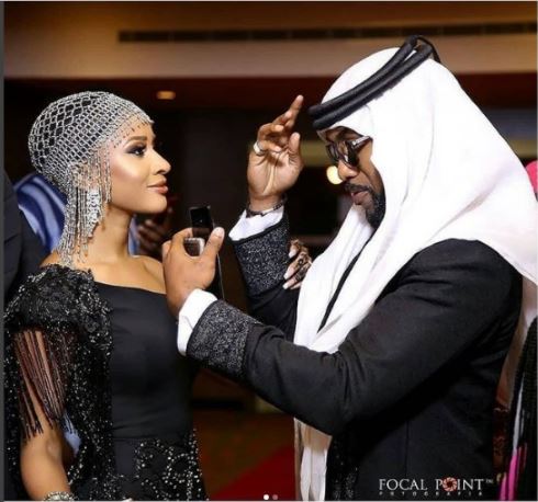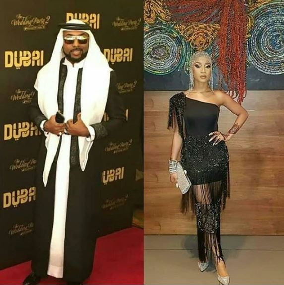 One of the latest couples in Nigeria, Banky and Adesua Wellington made sure all eyes were on them, as they arrived the Wedding Party 2 premier venue, in their Arabian-themed outfit.