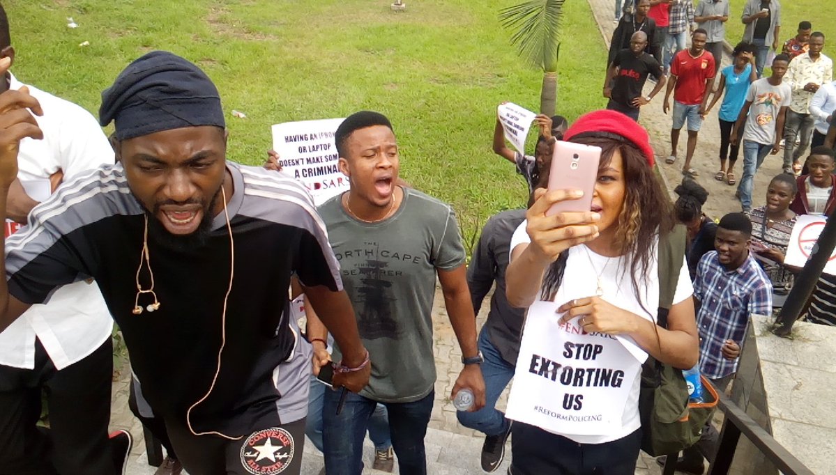 Some Nigerians today protested against the Special Anti-Robbery Squad of the Nigeria Police after stories of abuse went viral on social media forcing the Inspector-General of police to call for a reform of the unit.
