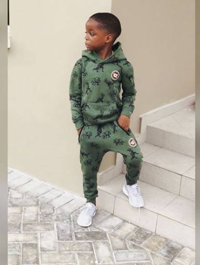 Rocking a green outfit and white sneakers, the little man struck different poses for his mini shoot. He is presently 6 years old.