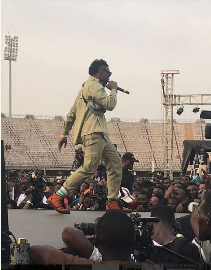 Formerly Star Boy entertainment singer, LAX was pictured as he performs in his NYSC uniform at the Olamide Live in Concert OLIC4 in Lagos.