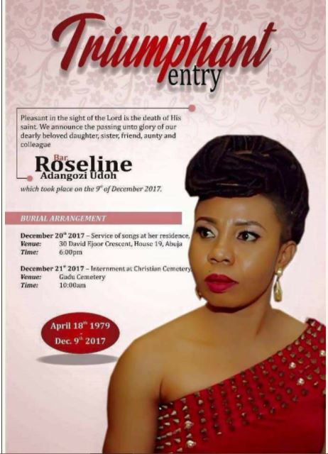 A pretty female Akwa Ibom lawyer, Roseline Udoh has died with the cause of her demise currently unknown.