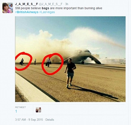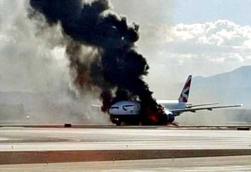 Heroic British Airways pilot saves 157 passengers after bringing flaming 90mph Gatwick-bound jet to halt in just NINE seconds at Vegas airport allowing them to make miraculous escape with just two injuries.