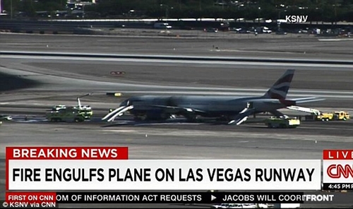 The pilot was readying the plane for take off when it burst into flames at a Las Vegas airport on Tuesday evening. It had been bound for London Gatwick, and was travelling at 90 miles per hour when the left engine caught fire after a catastrophic failure.