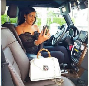 Delectable Nigerian actress, Chika Ike shared a beautiful picture of herself in her SUV but her seeming ostentatious handbag has caught the attention of her fans.