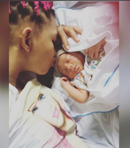 Rumoured Ex-girlfriend to popular Soundcity TV host, VJ Adams and fast-rising Nollywood actress, Princess Pemu has welcomed her bundle of joy yesterday in an undisclosed hospital.