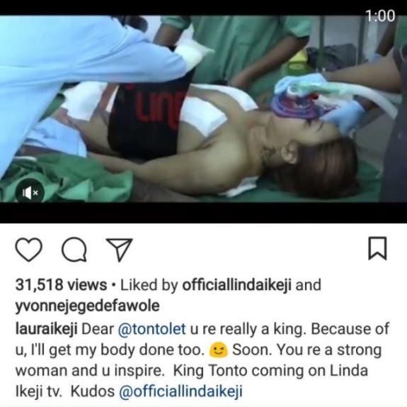 Laura Ikeji took to social media to reveal that she’s ready to go under the knife to show how inspired she is by Tonto Dikeh’s surgeries.