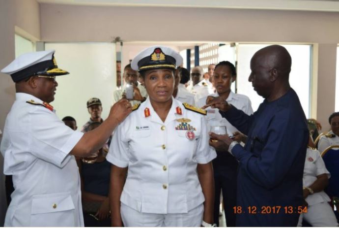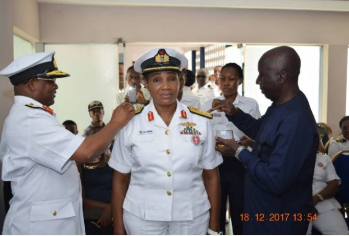 The Nigerian Navy on Monday in Lagos, decorated the first female nurse in Nigeria to rise to the rank of a one star general with the rank of Navy Commodore.