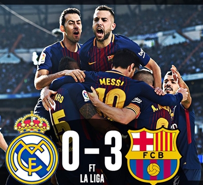 Barcelona inflicted an embarrassing 3-0 El Clasico defeat on 10-man Real Madrid at the Bernabeu to leave the Champions League holders 14 points behind in the Spanish Liga title race.