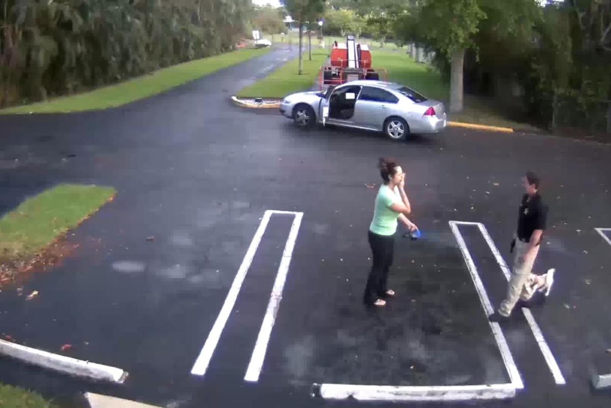 In the shocking video footage released by Boynton Beach police on Friday, DeMarco can be seen climbing out of the car before the two walk side by side out of the frame.