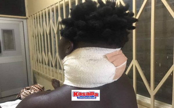 An 18 years old hair dresser, Theodora Ansah has had her neck slashed by her angry boyfriend, Raymond Boabey, a construction worker at Likpe Mate, a suburb of Hohoe in the Volta region, KasapaFMonline has reported.