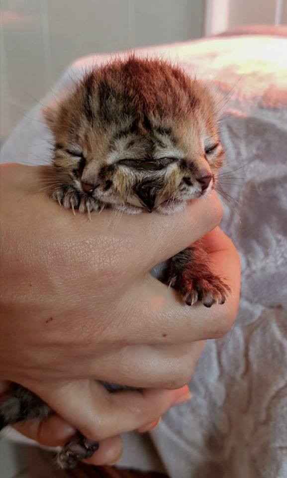 Because of the kitten’s uniqueness, the rescuer started a Facebook page for Bettie Bee with pictures and updates. The kitten appears to have a condition called craniofacial duplication, or diprosopus.