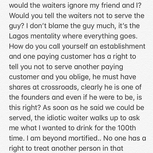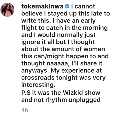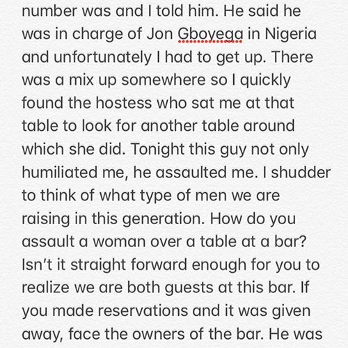 Media Personality and Socialite, Toke Makinwa, has taken to her social media account and allege how she was recently assaulted and humiliated by the bodyguard of a British Actor in Lagos.