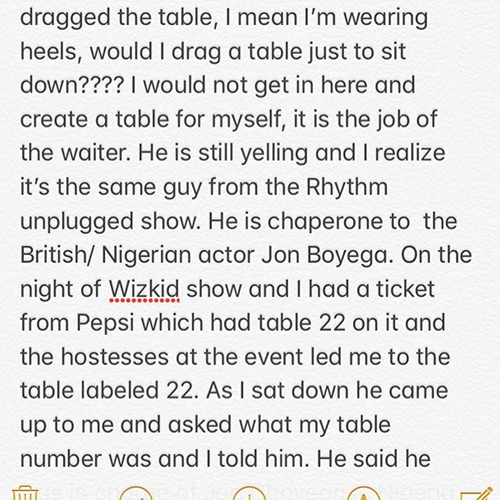 Popular media personality and Rhythm FM Lagos OAP, Toke Makinwa has revealed how a bodygaurd to British actor, John Boyega, allegedly assaulted, humiliated and disgraced her because she wanted to sit close to the actor in Lagos.