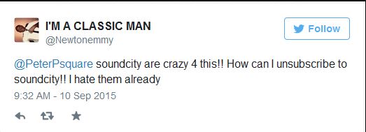 Peter Okoye of the Psquare music duo has discouraged his fans from watching Soundcity music channel on Twitter. This confirms the strained relationship between the duo and the management of the television station.
