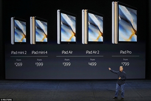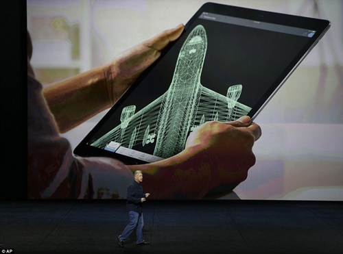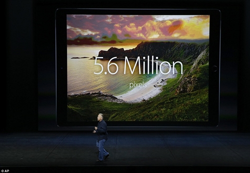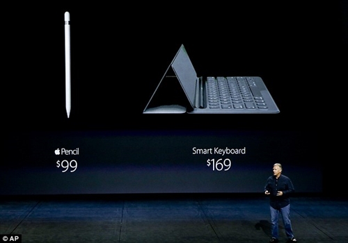 For the first time, Apple's flagship tablet has been fitted with four speakers that balance the sound based on how it is being held. It also comes with two new accessories - a $169 case with a keyboard built in, and a stylus called Apple Pencil (pictured with Apple's Phil Schiller)