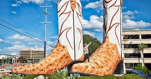 The Tallest cowboy boot sculpture measures 10.4m (35 ft 3 in) in height and was constructed by Bob Wade, 72, (USA) of San Antonio, Texas. The Texan has enjoyed a 40-year career as an alternative artist and originally created the boots by commission in Washington DC.