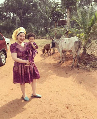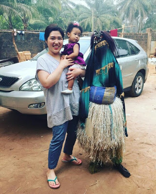 The Asian woman whose husband identified as Ogbuji Obinna and their adorable daughter, Adaobi, spent the Christmas and New Year holidays in the young man's hometown in Osina village, Ideato North Local Government Area of Imo State.