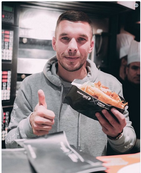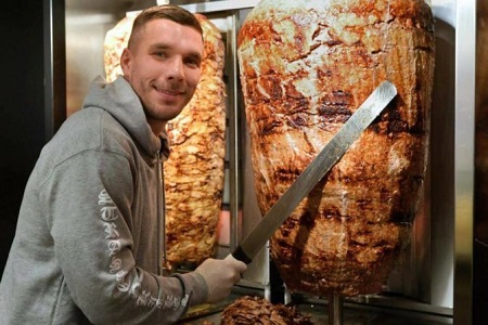 Podolski runs the restaurant along with two co-owners. The player posed in front of a kebab and signed autographs.