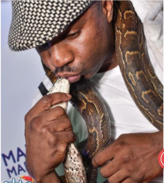 Lagos Socialite, Pretty Mike Seen Kissing His Python Snake (Photo)